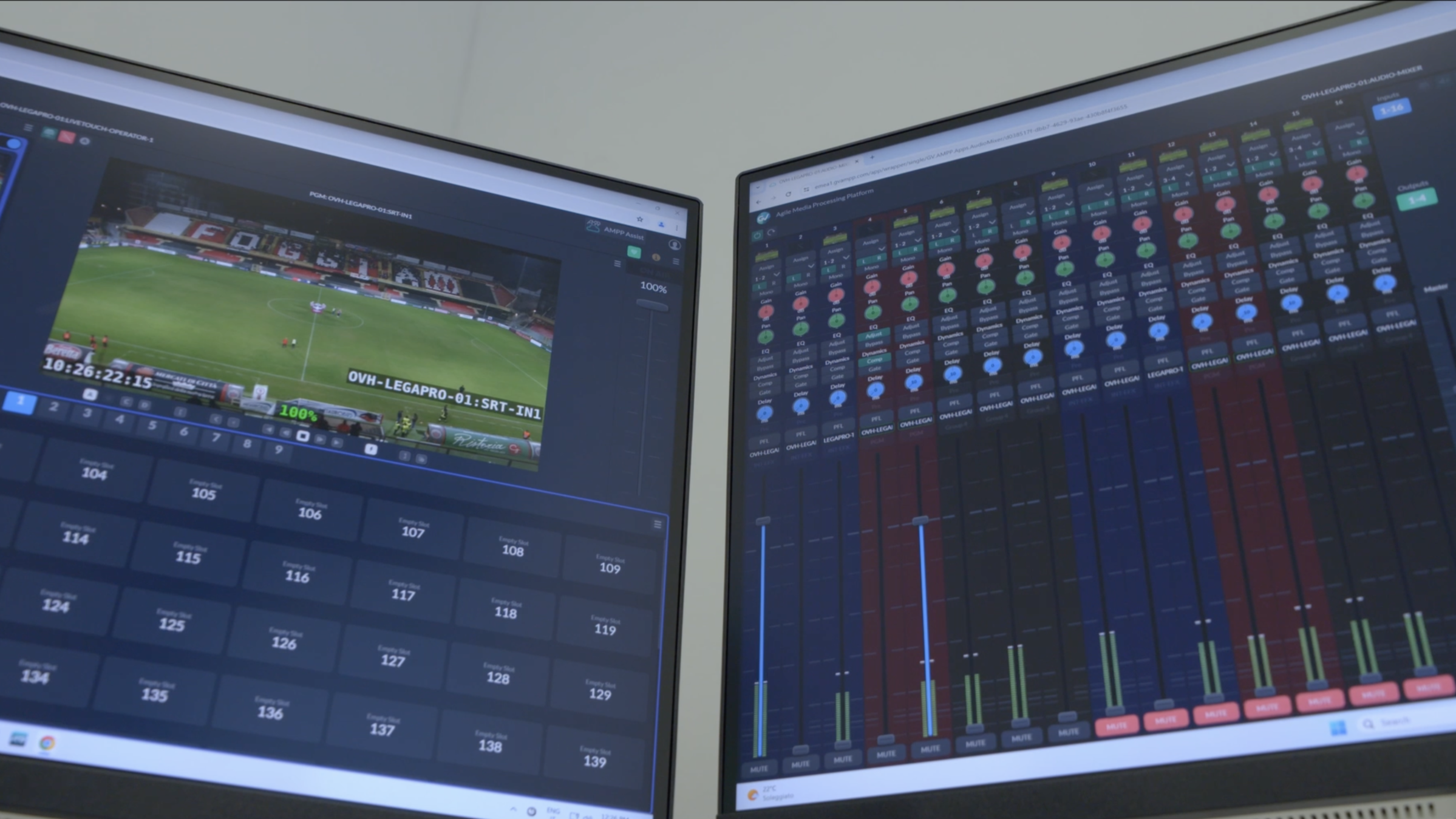 - For Lega Pro, Video Progetti implemented Grass Valley AMPP, enabling remote galleries where a single operator manages video switching, audio mixing, replay and graphics through AMPP Live Producer Pro, a Streamdeck panel and an HTML5 graphics platform.